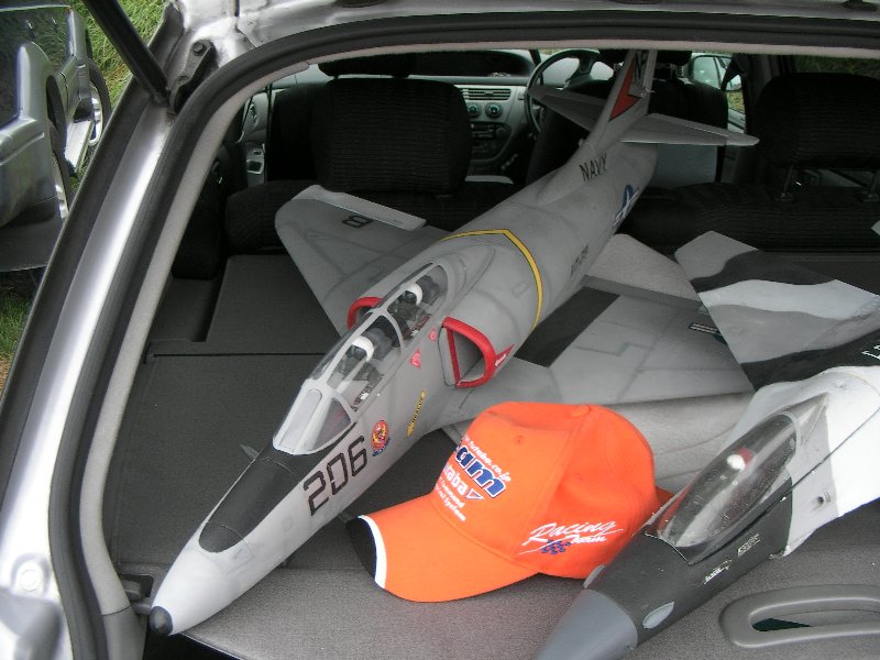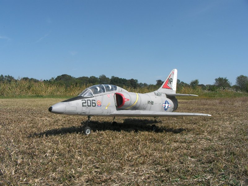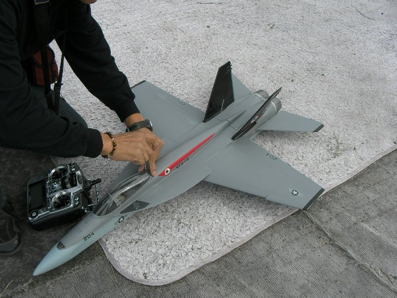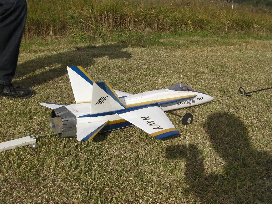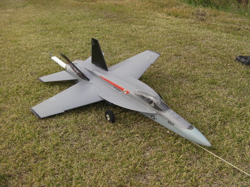 主翼にねじり下げがついており。飛行特性はとても素直で、とばしやすい機体です。 主翼、水平、垂直尾翼の取り付け箇所を3mmカーボンパイプにて補強しました。 また固定式車輪と、ラダーを追加しました。 そのほかインテークの形状もオリジナルから、スケール機を意識した形状に変更し、コックピットも雰囲気優先で作り込んであります。 |