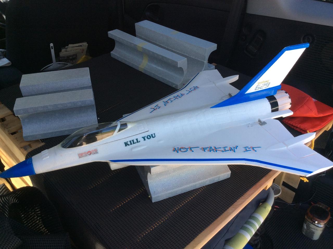Freewing製90mm12BのEDFユニットはとても静かです。 吸気音がすごくイイですね。 機体そのものは重く、パワーに余裕はありませんが、浮いてしまえばとても素直で飛ばしやすい機体です。 |