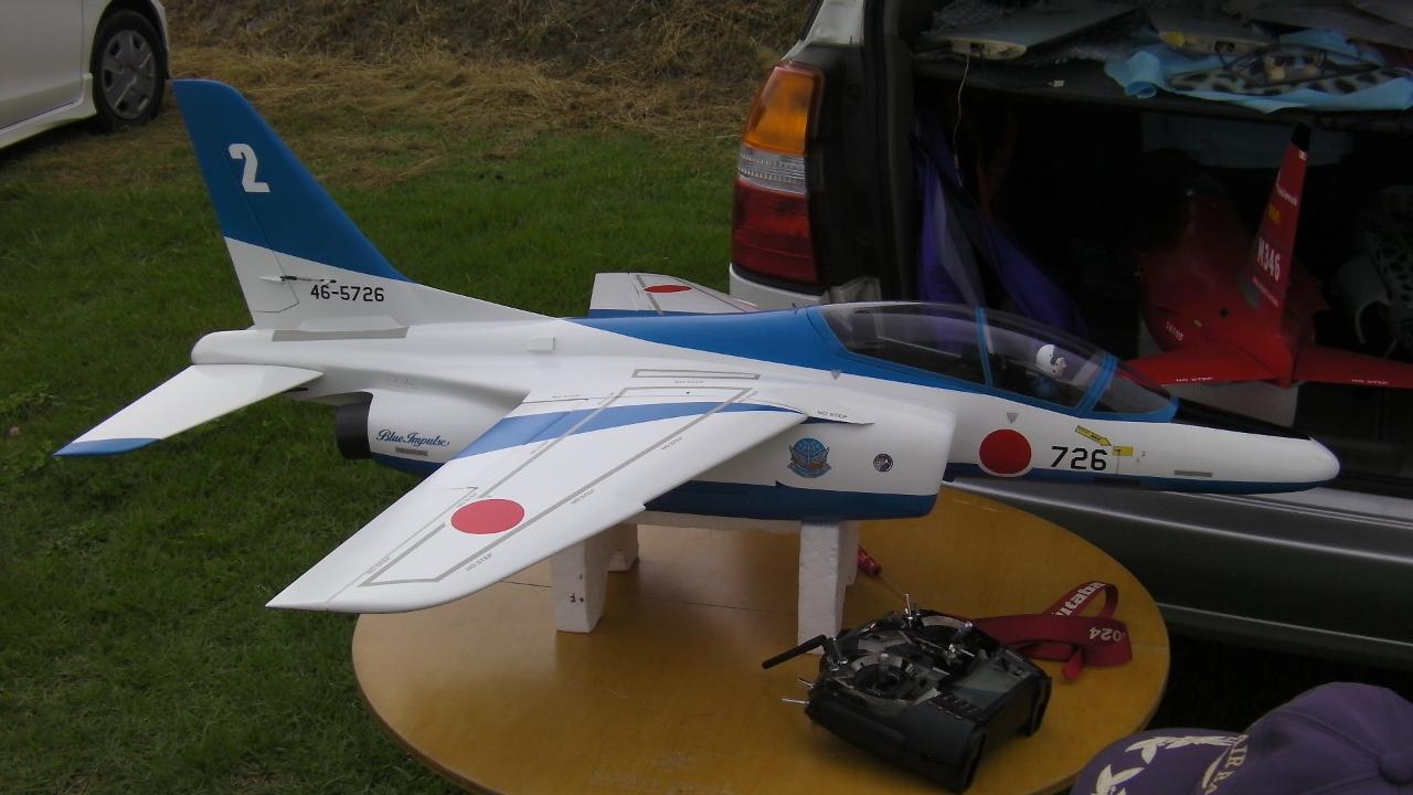 | Description: | 片岸さん設計の川崎T4練習機、レーザカットパーツより3人での共作、3機共ブルーインパルスカラーになっています。
