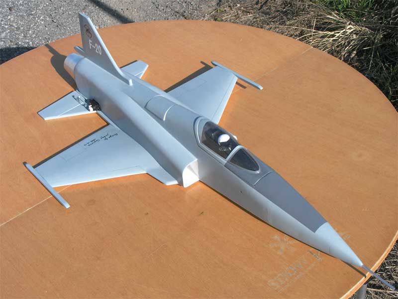 pokeyさんF-20のキットから内径50mmのファンを取り付けるために大きさ等改造しています。WeMoTecマイクロファンでパワーがありますが、フライトは気が抜けません。