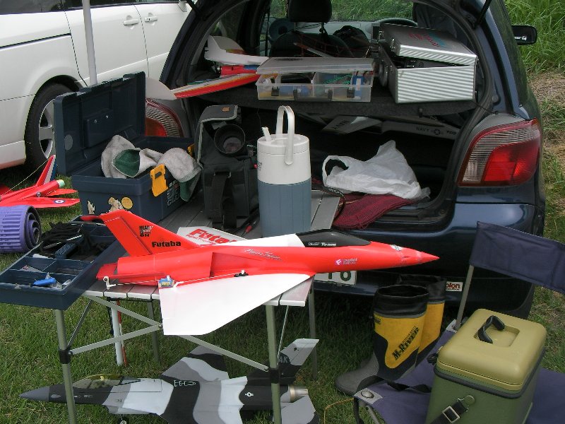 主翼は発泡スチロールコアに、絹を水で溶いたタイトボンドで張り、その上を1,5mmスチレンでプランクしました。 EDF,ESC他メカにアクセスできるよう、各部分にハッチをもうけ、メンテナンスができるようにしています。