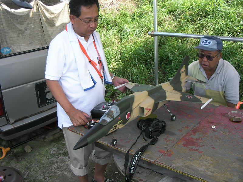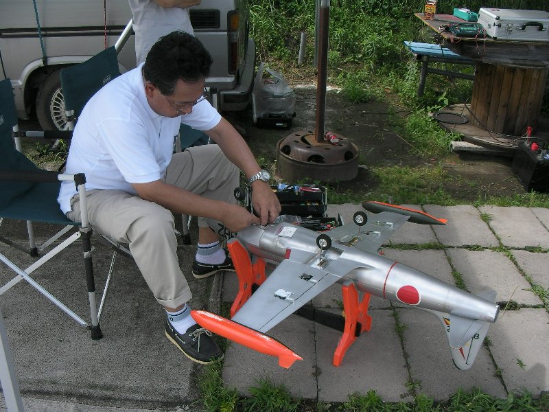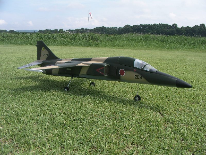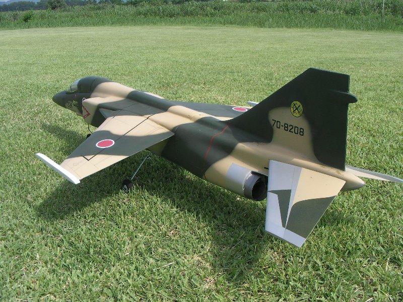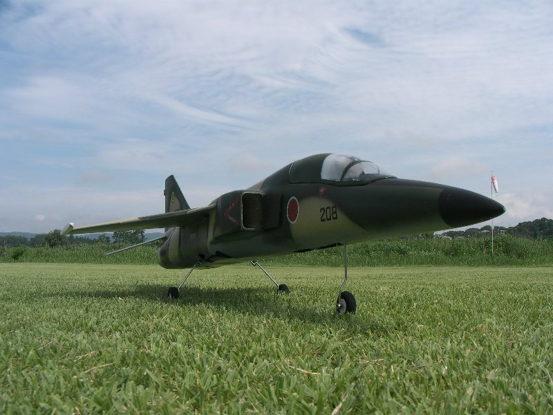 | Description: | 完全自作 FRP製 小さな主翼に2kgの重量ですが68mmファンシングルで、ミサイルのように飛行します。低速も安定していますので着陸も楽ですが上空での視認性は悪いです。 |