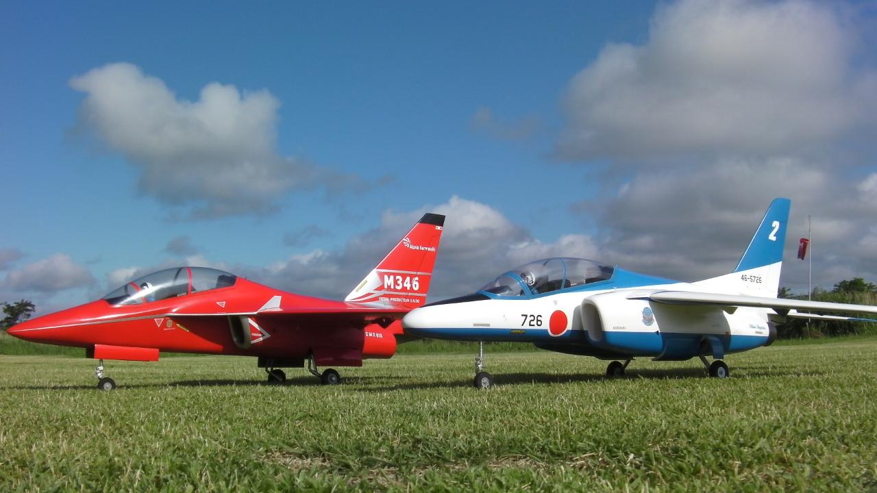 Description: M-346 64mmツインダクト。設計はKATAGISHIさん、1号機を一回り小さくして64mmツイン仕様の設計図をいただき、製作しました。EDFはメタル5ブレードで、DR.Mad Thrust,又はLanderとう名前で出ているのと同じのようです。